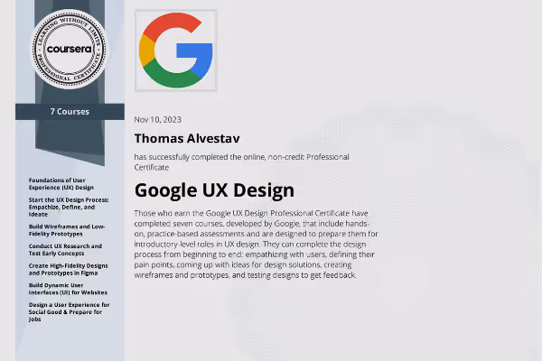 Med en Google UX Certifiering förbättrar jag nu kunskapen inom användarcentrerad design.